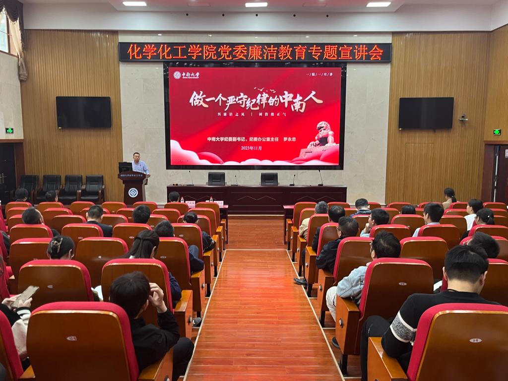 为深入学习贯彻党的二十大精神和二十届中央纪委二次全会精神,持续推进纪律教育、廉洁教育、警示教育走深走实,落实校党委“党风廉政宣传教育月”工作部署和校纪委“六个一”工作举措。11月8日下午,校纪委副书记、纪委办公室主任罗永忠在必赢626net入口首页133报告厅作了题为“做一个严守纪律的中南人”的廉洁教育专题宣讲,学院班子成员、中层干部、办公室行政人员、全体教职工党员和党支部支委参加。会议由学院党委书记刘有才主持。
