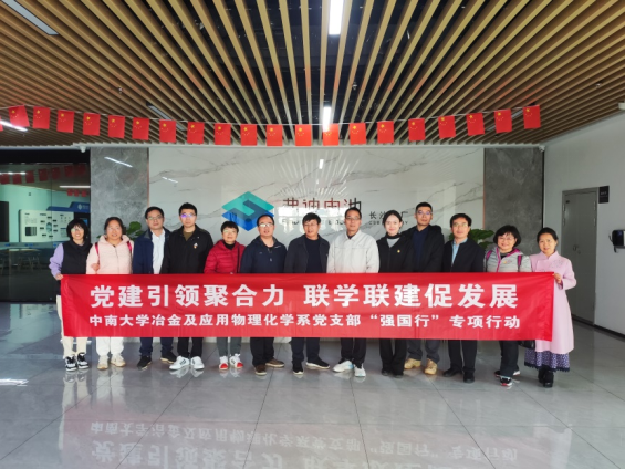 为加强高质量党建引领高质量发展,深入推动教育、科技、人才协同融合发展,引领师生在服务地方经济社会高质量发展中,为强国建设作出更大贡献。12月1日,中南大学冶金及应用物理化学系党支部践行“强国行”专项行动,赴长沙氟迪电池公司和雷锋纪念馆开展“党建引领聚合力,联学联建促发展”主题党日活动。