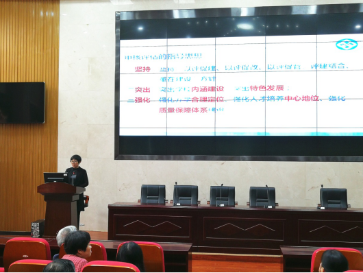 图二:卢红梅副院长剖析中南大学本科教学工作审核评估预评估专家反馈的意见
