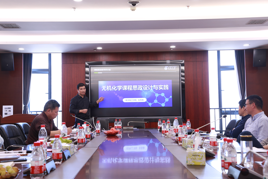 在交流研讨环节,与会老师逐一发表了对课程思政的见解,并结合教学经历分享了课程思政的优秀案例和心得体会。制药系主任刘艳飞认为提高教学质量是深化课程思政育人目标的最有效途径,要鼓励老师们参加各类赛课,上好课,上金课;制药系党支部书记王艳认为课程思政的本质是教书育人,要落实课程思政,首先要让老师们意识到立德树人的伟大使命,认真负责上好每一堂课,她建议学校将课程思政将纳入教学考评机制;有机系教学主任王微宏提出认真备课、把正能量带入课堂就是最好的课程思政;化工系主任王帅分享了化工系两位老师的课堂案例,认为课程思政不能机械地加入思政元素,而是要结合教师本人的人生经历和所见所闻,紧扣知识点适当拓展;无机系党支部书记张寿春作了《无机化学课程思政设计与实践》的专题报告,分享了自己在课程思政教学中的经验和收获;分析科学系党支部书记于金刚认为开展课程思政首先要求老师要有一身正气,要弘扬爱岗敬业、关爱学生,严格要求,以身作则的师德师风;无机系教学主任王曼娟结合实验课教学经验,分享了自己在实验课上进行思政教学的案例……