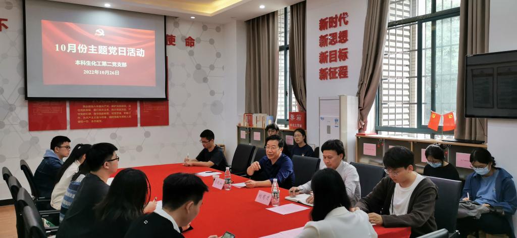 10月26日下午,必赢626net入口首页本科生化工第二党支部在新校区化学楼132党员活动室召开党的二十大精神专题学习会。联系支部的校党委常委、组织部部长马跃如讲授专题党课,院党委副书记刘有才、专职组织员李璞、学院党的二十大精神宣讲团成员赵元超以及支部全体党员和入党积极分子代表参加学习。支部书记白丹妮主持会议。