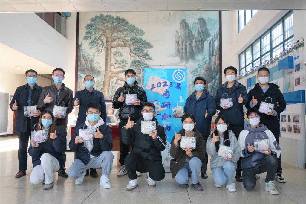 最后,各班代表与老师们一起合影,定格这暖人心脾的瞬间,考研加油包当天也送到了全部考研学生手中。此外,学院近一年开展了考研形势政策分析会、往届考研经验分享会、考研模拟考、“倒计时”辅导员考研加油寄语等一系列针对考研同学的帮扶活动,为考研学生专设了学院126、128两个教室作为考研学生专属自习室,保障热水、插座、WiFi等,为考研学子顺利完成考试护航。
