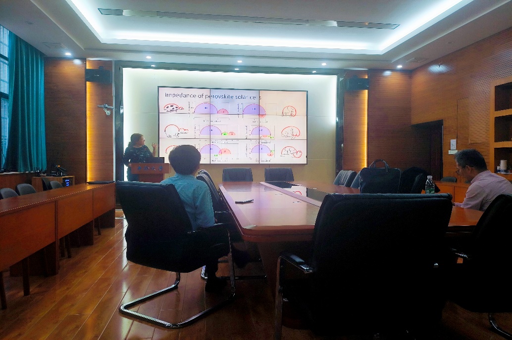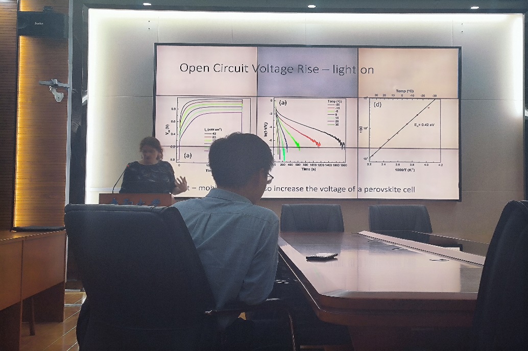 报道接近尾声,Petra Jane Cameron教授和现场聆听的老师和学生进行了精彩的互动。现场有同学对JV曲线的理解向教授请教,教授对从JV曲线可以得到的太阳能电池电化学信息提供了有效的学习方法和独特的见解。