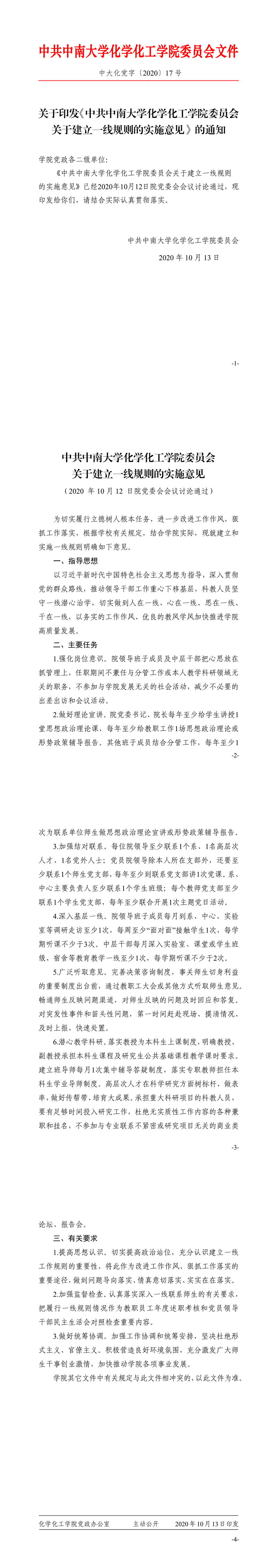 关于印发《中共必赢626net入口首页委员会关于建立一线规则的实施意见》的通知