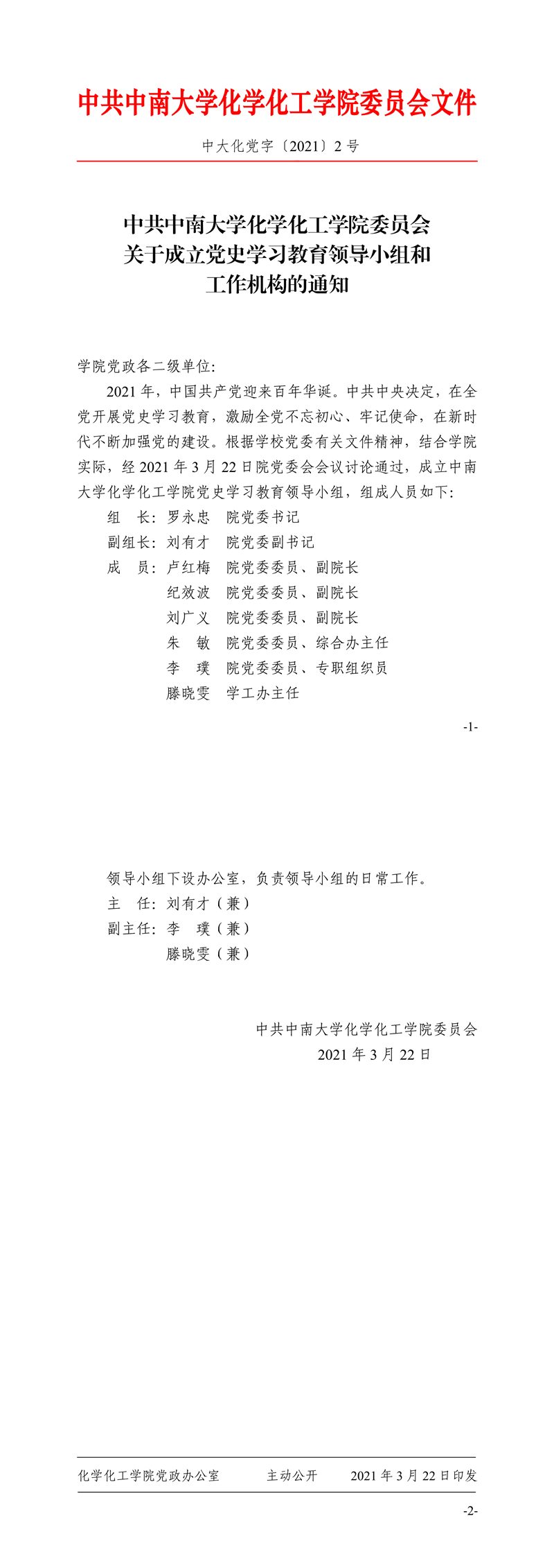 中共必赢626net入口首页委员会关于成立党史学习教育领导小组和工作机构的通知