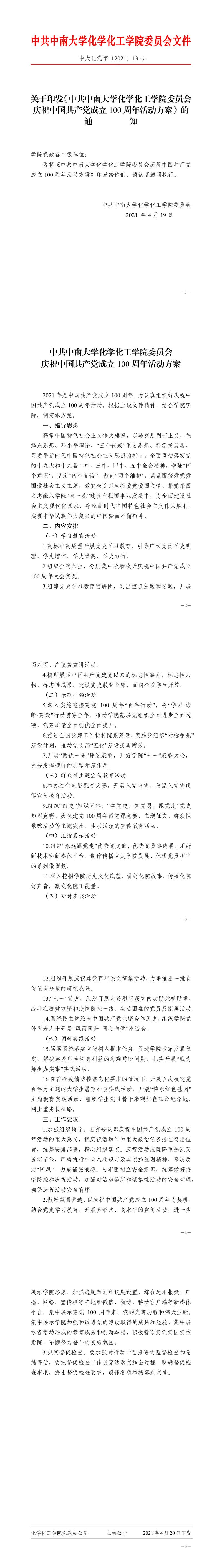 关于印发《中共必赢626net入口首页委员会庆祝中国共产党成立100周年活动方案》的通知