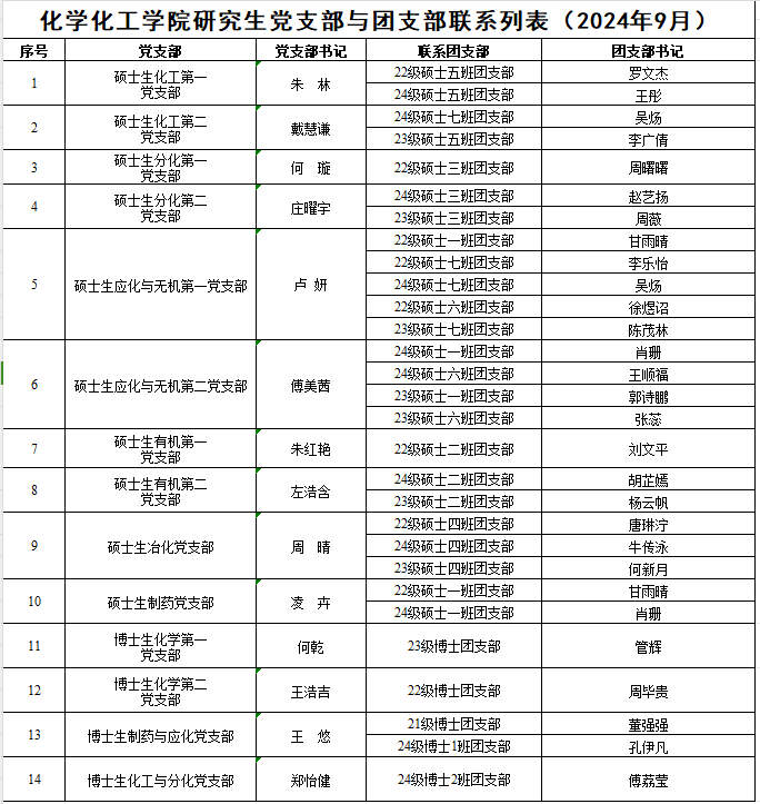 必赢626net入口首页研究生党支部与团支部联系列表(20240913)