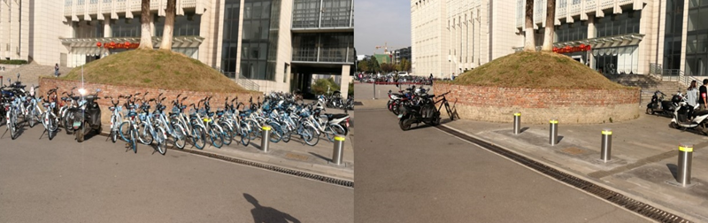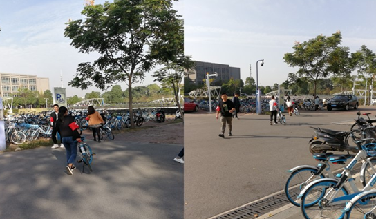 通过支部第一小组成员的共同努力,原来摆放错乱的共享单车全部被移到指定停放位置,同时对后面来的同学主动规范停车起到了积极影响作用。