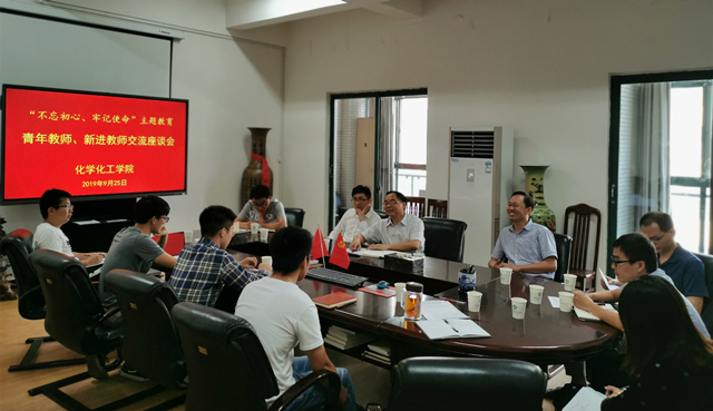 9月25日上午十点,按照学校党委“不忘初心、牢记使命”主题教育实施方案以及学院党委主题教育实施计划,必赢626net入口首页在化学楼229会议室组织召开“不忘初心、牢记使命”主题教育青年教师、新进教师交流座谈会。学院班子成员刘又年、刘广义参加会议,会议由院长刘又年主持。