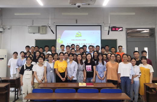 范帆回顾了支部的发展历程,“支部从2018年5月迎来第一批新发展的预备党员,到今天已成功发展了61名学生党员,支部在学院党委的正确领导下,在校党委党校常务副校长赵永正和学院党委组织员李璞联系指导下,不断成长壮大。支部历年来的组织生活开展积极而创新,2017年的主题党日活动‘喜迎十九大诗歌摄影比赛’以及2018年的主题党日活动‘接力书宣言,墨香传化院’都获得了‘中南大学组织生活创新案例’荣誉。在2018年度支部书记‘双述双评’过程中,支部被评为‘优秀’等次。此外,本党支部的党员同志在化学、化工、制药等各大竞赛中崭露头角,均获得了赛事最高奖的佳绩,为学院和学校增添了诸多荣誉。”