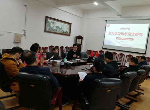 2019年3月14日,无机化学系党支部全体成员在化学楼229室举行主题党日活动,张寿春书记主持对2019年全国“两会”政府工作报告进行解读,对《中共中央关于加强党的政治建设的意见》、《中国共产党重大事项请示报告条例》和全省教育大会精神进行专题学习。