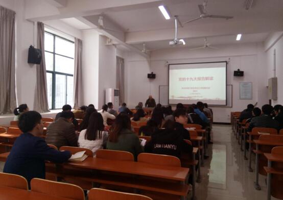 随后,刘书记再次为我们深入解读了党的十九大报告,加入了自身的理解,深入细致。并借用总书记十九大报告中对青年人的寄语,提出对在场师生希望要求,勉励大家要有理想、有本领、有担当,为学校、学院“双一流”建设,为夺取新时代中国特色社会主义伟大胜利做出贡献。