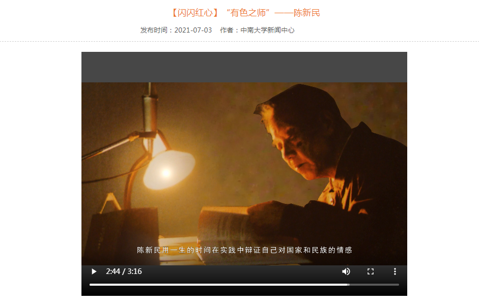 以优秀的典型反映奋进主旋律是学院党委在党史学习教育中另外一条真正好用管用的举措。学院党委从身边事入手,着眼落细落实,选树在教书育人、科学研究、服务社会等领域涌现的先进典型,用身边人身边事教育人,推出“榜样力量”专栏,大力宣传罗一鸣、金冠华等优秀党员先进事迹,发挥榜样的示范引领作用。同时,充分挖掘校史资源中的红色文化资源,深入开展致敬先贤系列活动,组织师生参与创作《【闪闪红星】“有色之师”——陈新民》,通过师生联袂演绎的形式拍摄MV短视频在网上展示,播撒信念的种子,点亮初心之光。