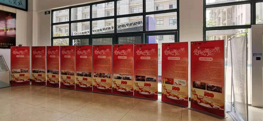 学院党委深入挖掘校内外红色资源,分别与学校附近的红色教育基地彭德怀同志纪念馆和安化一中共建党员教育培训基地等,把党史学习教育与学院发展定位、学科特色、学院文化传统和人文精神紧密结合起来,创建特色文化空间,拓展学习载体。一面打造党建文化长廊,一面建成文化大厅和党建荣誉厅,通过“红色化韵”发挥文化的浸润、熏陶作用,让“家门口”的红色文化资源活起来、动起来,为培养担当民族复兴大任的时代新人营造良好育人氛围。