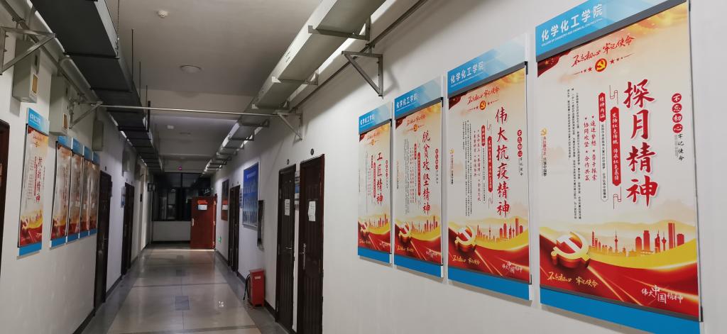 刚走进学院教学楼大厅,新设的“党史学习教育专栏”“党员读书角”和十块“中国共产党建党历程”展板令人感到眼前一亮。院党委书记罗永忠指着学院走廊两侧文化墙上的十多块“建党精神”宣传框、化学化工科学界名人展板以及学院发展史和成果展示墙说:“这是我们在建党百年之际、在党史学习教育中,结合中国化学化工发展史、学校和学院育人成果而创新布置的一个特色宣传项目,目的就是给广大师生提供一个走近化学化工、认识化学化工的窗口,让大家从红色文化资源中感悟伟大的科学家和优秀先辈们听从党的召唤,与祖国同行、与科学共进的艰苦奋斗精神和不断创新精神,激励师生继承优良传统、勇攀科技高峰,为实现中华民族伟大复兴贡献自己的力量。”