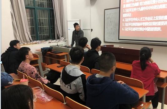 首先支部书记张沛毅为同志们解读了习近平总书记的讲话全文。其强调中国共产党向人民、向历史交出了一份优异的答卷。现在,中国共产党团结带领中国人民又踏上了实现第二个百年奋斗目标新的赶考之路。中国共产党立志于中华千秋伟业,百年恰是风华正茂!同志们都为中国今日之成就感到自豪,为习总书记的高瞻远瞩所折服。接着张沛毅老师从整体结构上指出时代背景、重要意义、行动号召等方面,并结合大学生实际为同志们提出了人生方针以及宝贵的建议。