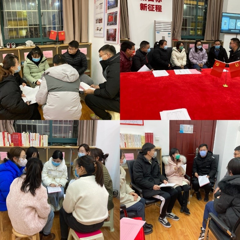 其后支部书记高柱同志带领全体党员同志开展了2021年度组织生活会及民主评议党员大会。首先,全体参会党员分成四组,在各组小组长的组织下进行党员自评与互评,所有党员发言完后,高柱书记对会议情况进行点评,并带领全体党员开展测评,测评结束后由两位支委蓝晰雯、何钰菡同志进行结果统计,最终,高柱书记现场通报民主评议党员结果。