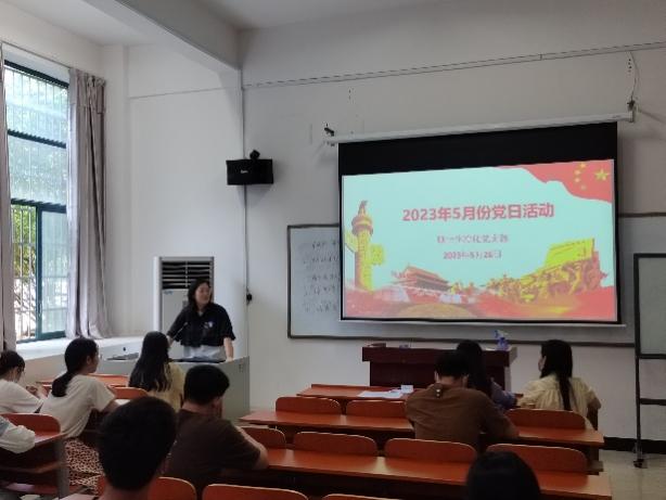 2023年5月26日下午14:30-16:30,硕士生冶化党支部在124教室召开支部党员大会,开展5月份主题党日活动,联系支部的“双带头人”教师党支部书记胡久刚老师讲授专题党课,学院党委专职组织员汪菁垚老师与会指导,支部副书记杨俊同志主持会议,主要内容包括: