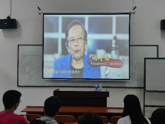 专题研讨结束后,开展“一月一课一片一实践”活动:党小组代表徐瑞同志讲党课并集体观看榜样7《陆生梅:扎根陕北绽芳华,为党工作无期限》。