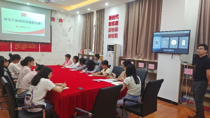 会议第二项,张寿春老师讲授党课,带领全体党员同志共同探讨“研究生如何培养创新思维”问题。学习并理解了创新驱动发展战略是新时代我国高质量发展的重要动力引擎,人才是创新驱动发展的核心基础资源,必须加强创新人才培养。张寿春老师还提出研究生可以通过“夯实专业基础,强化创新意识,广泛阅读文献,勤于实践探索,主动开展交流”这5个途径培养创新思维。