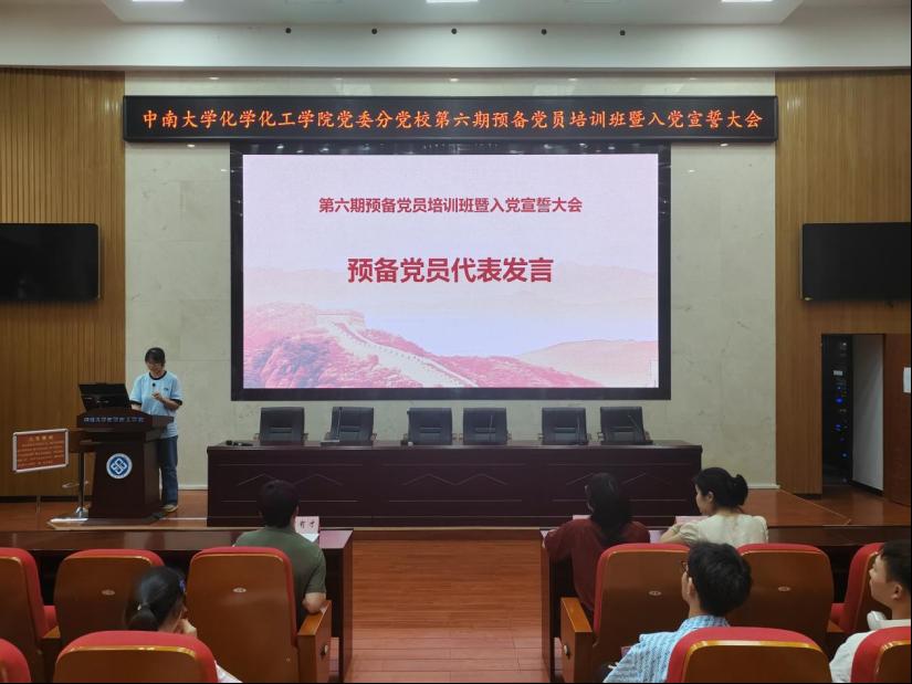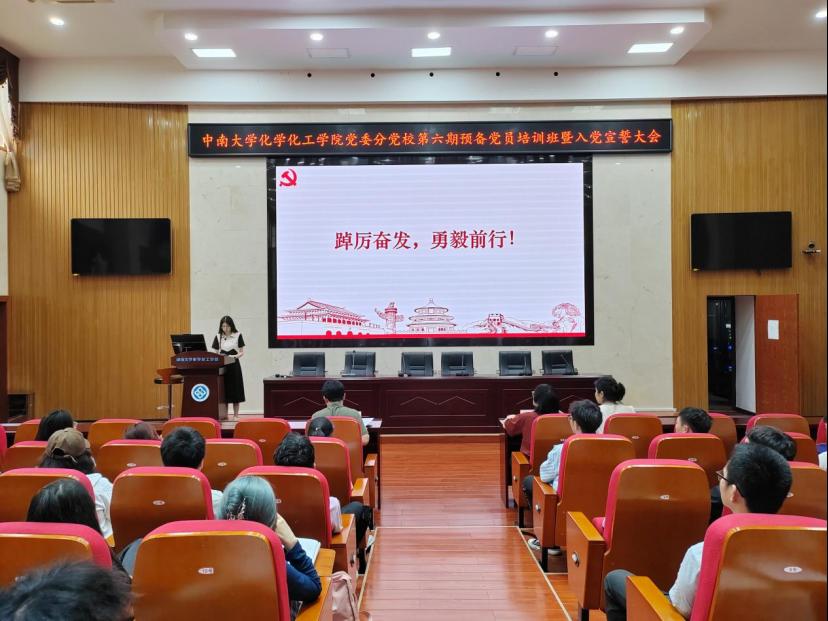 为深入学习贯彻党的二十大精神,增强预备党员对党的基础知识和创新理论的理解,提高其思想觉悟,加强党纪学习教育,6月19日下午,学院党委在化工楼133报告厅举行了第六期预备党员培训班暨入党宣誓大会。院党委书记、分党校校长刘有才,院党委专职组织员、分党校办公室主任汪菁垚,本科生化工第一党支部书记、院党委分党校第49期积极分子培训班班导师肖茜斤出席本次大会,第18期发展对象培训班顺利结业的64名预备党员参会。本次会议由预备党员培训班班导师谭澳利主持。