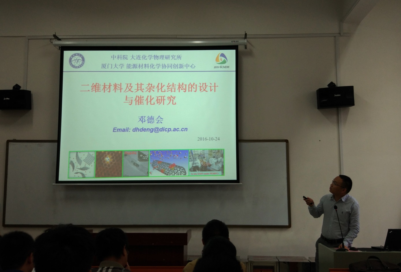 2016年10月24日下午14:30,新校区化学楼123室举办了主题为“新型纳米碳及其负载金属催化剂在催化反应中的应用”和“二维材料及其杂化结构的设计与催化研究”的学术讲座,主讲人分别是是中科院沈阳金属研究所催化材料研究部副研究员刘洪阳、中科院大连化学物理研究所催化基础国家重点实验室副研究员邓德会,本次报告会由必赢626net入口首页周永华教授主持。