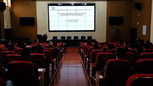 其次,为了能让同学们能更好的理解,James Foley教授讲的非常细,以至于从每一个用到的术语和概念开始讲起。然后步入主题:“为什么以及如何设计和发展一种新的治疗固体肿瘤的PCT药物”,同样地,为了便于同学们理解,James Foley教授从PCT这个概念开始讲解,随后介绍了它最近的发展,同时还讲解了他们在研究中的重要发现以及他们现在的研究方法,以及为什么会进入PCT这个领域。最后,James Foley教授进行了总结,那就是应该如何去开发一种新的PCT药物。James Foley教授在报告中还用各种道具为我们解释其中的原因,生动形象,大家都沉浸在教授的精彩讲解中。
