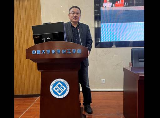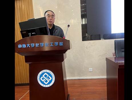 贺跃辉教授向与会教师分享了题为“金属间化合物异质化应用及产业化”的精彩报告,在介绍工作和成果的同时,他强调科学研究要立足产业化,坚持“四个面向”,努力做出原创性成果打破技术瓶颈,创造经济价值,反哺社会。