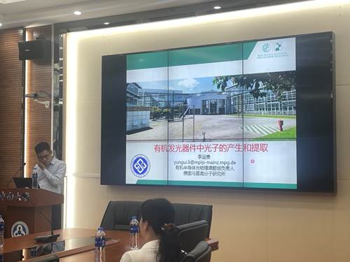 报告主要介绍了基于瞬态发光和瞬态吸收的光谱技术,具有普适性的激子动力学模型,以及热活化延迟荧光、室温磷光等光物理现象中非辐射过程的量化分析。报告中,李博士讲述了构建数值计算模型的过程,如何量化分析宽复合区域有机发光二极管器件的光提取效率,阐述证明了器件电学性能对光提取效率的重要影响。从而,归纳出通过调控该类器件的光学微腔来实现高效率和长寿命有机发光二极管器件的结论。李博士的报告具有非常强的创新性,同学们深刻感受到掌握交叉学科知识在科研工作中的重要性,给同学们以深刻的启发。
