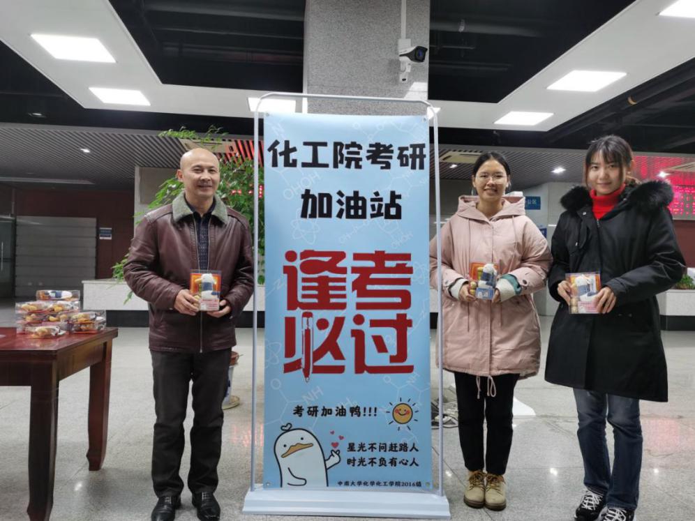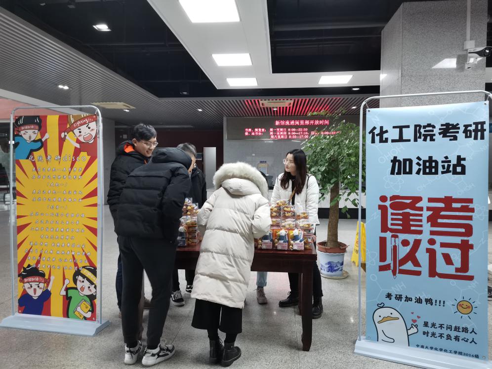 为了缓解考研同学们紧张心理,以更好的心态面对即将到来的研究生入学考试,12月19日中午,在辅导员范帆老师的带领下,2016级的同学们于图书馆一楼大厅设立了“化工院考研加油站”,给考研学子送出心意满满的“加油鸭”礼盒,为考研学生们加油助力。