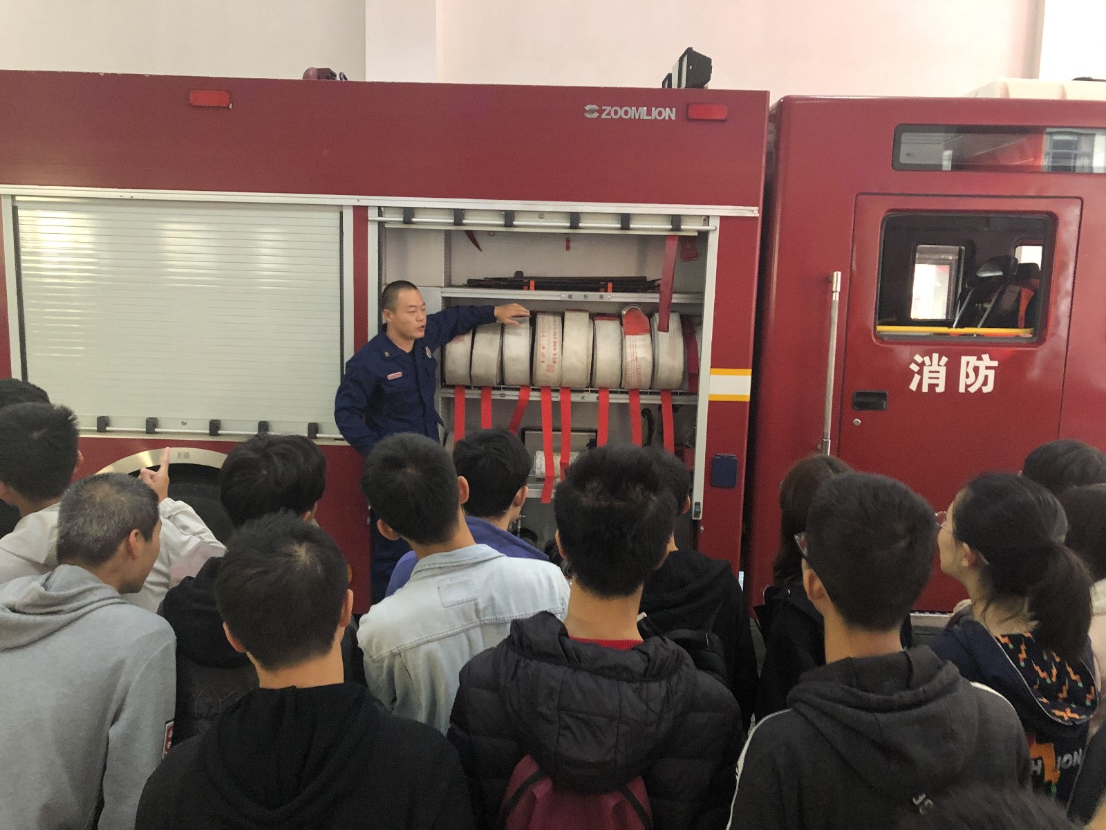 接着,王班长带领大家体验穿戴消防服,并介绍了消防服的基本构造、作用以及配备的小工具,在穿上消防服时,大家都感受到了一种使命感,意识到了消防安全的重要性。然后王班长带领同学们体验水枪,虽然水枪不易控制,但喷水时可以让水分散大范围灭火也可针对一处火源集中灭火。最后,王班长为同学们讲解校园防火知识,着重讲授了宿舍着火的预防、应对与逃生方法,让同学们切身体会到了消防安全的重要性,并学习到了有效防范火灾的知识。