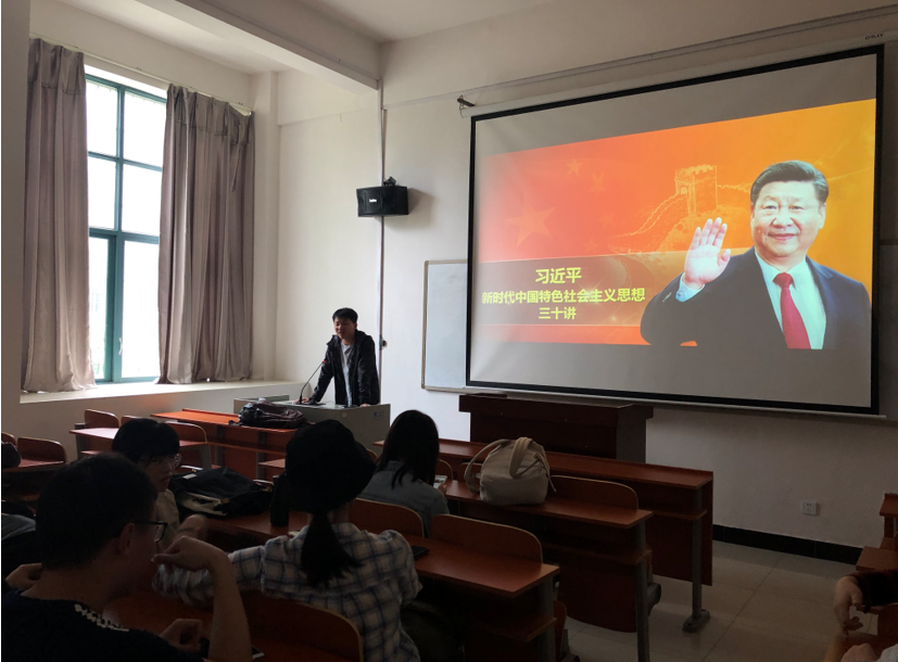 4月19日下午,应化1602班于新化学楼128教室顺利开展“峥嵘七十载,奋进新时代”主题班会,全体同学对习近平新时代中国特色社会主义思想和2019两会精神进行学习。