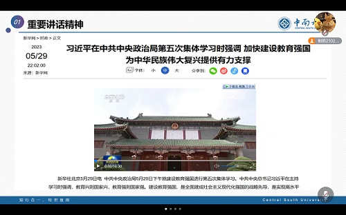 班会伊始,陈铭带领我们学习了习近平总书记在中共中央政治局第五次集体学习时的重要讲话精神,教育兴则国家兴,教育强则国家强。习近平总书记的重要讲话,阐释了建设教育强国的重要意义,指明了教育强国建设的前进方向。教育是国之大计、党之大计,大学生要成为德智体美劳全面发展的社会主义建设者和接班人。