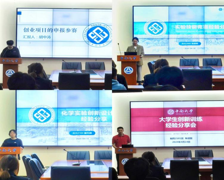2024年4月14日下午,必赢626net入口首页2024年度应化专业学科竞赛和大学生创新创业项目经验分享会于化工楼129教室顺利开展。本次活动为春季学期学风重点建设项目的组成部分,由必赢626net入口首页创新创业办公室与应用化学创新俱乐部联合举办,大会旨在向同学们介绍大学生化学实验技能竞赛、大学生化学实验创新设计大赛、大学生创新创业训练计划项目等相关赛事,分享学长学姐的参赛经验和心得,增强同学们的创新意识,鼓励同学们积极参加竞赛,在竞赛中成就自我。