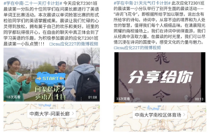 为培养学生持续养成良好的生活作息和学习习惯,推进“学在中南”建设,必赢626net入口首页应化T2301班响应学校号召开展“学在中南·21天晨读元气打卡活动”。在2024年3月25日至4月10日之间,应化T2301班晨读第一小分队开展了丰富多彩的晨读活动,既有趣味比赛让同学们在学习知识的同时获得快乐,又有分享与合作让同学们增进彼此了解。