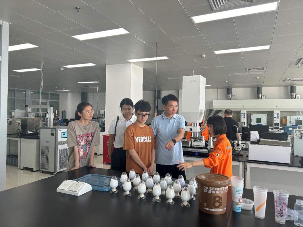步入化学研究院,师生依次对各类型实验室进行参观,工程师对整个工艺流程进行解说,让师生相对完整地了解到了化学品到原料再到产品的生产过程。