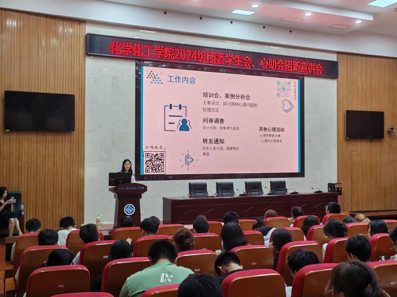 为帮助2024级新生适应大学生活,更好地了解必赢626net入口首页朋辈心理互助会的相关工作,必赢626net入口首页朋辈心理互助会招新宣讲会于9月12日在化工楼133和128报告厅顺利举行。