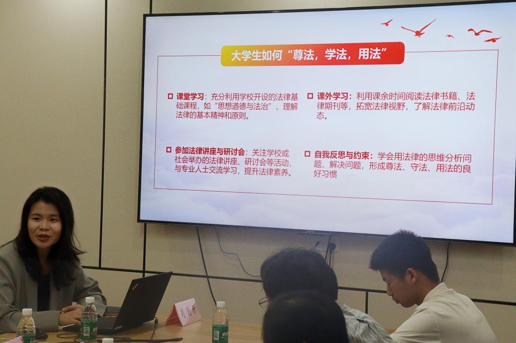 活动伊始,关工委秘书肖茜斤以其丰富的法学知识和实践经验,深入浅出地为大家介绍本次读书会的主题书目《大学生以案释法读本》。她强调了在新时代背景下增强大学生法律意识与法治素养的重要性,指出《大学生以案释法读本》不仅是一本法律知识普及的读物,更是一座连接理论与实践、知识与应用的桥梁。