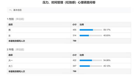 为更好了解必赢626net入口首页学生的学习、生活以及心理状态,必赢626net入口首页朋辈心理互助会于11月中旬面向本科生展开了线上问卷调查。本次活动共回收有效问卷769份。