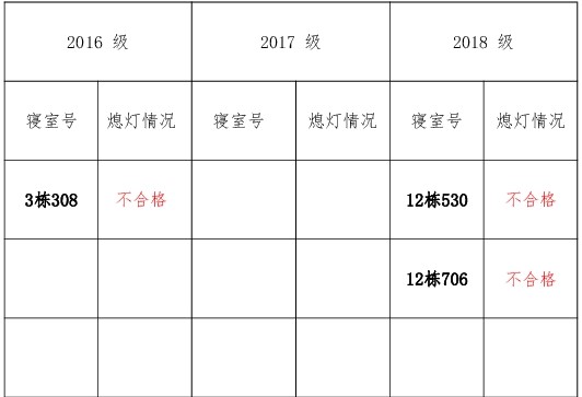 为改正各种不良现象和陋习,增强宿舍学习氛围,营造温馨家园氛围,必赢626net入口首页学生会生活部对三个年级所有寝室进行熄灯检查。本次熄灯情况通报不合格寝室 3间,具体情况如下: