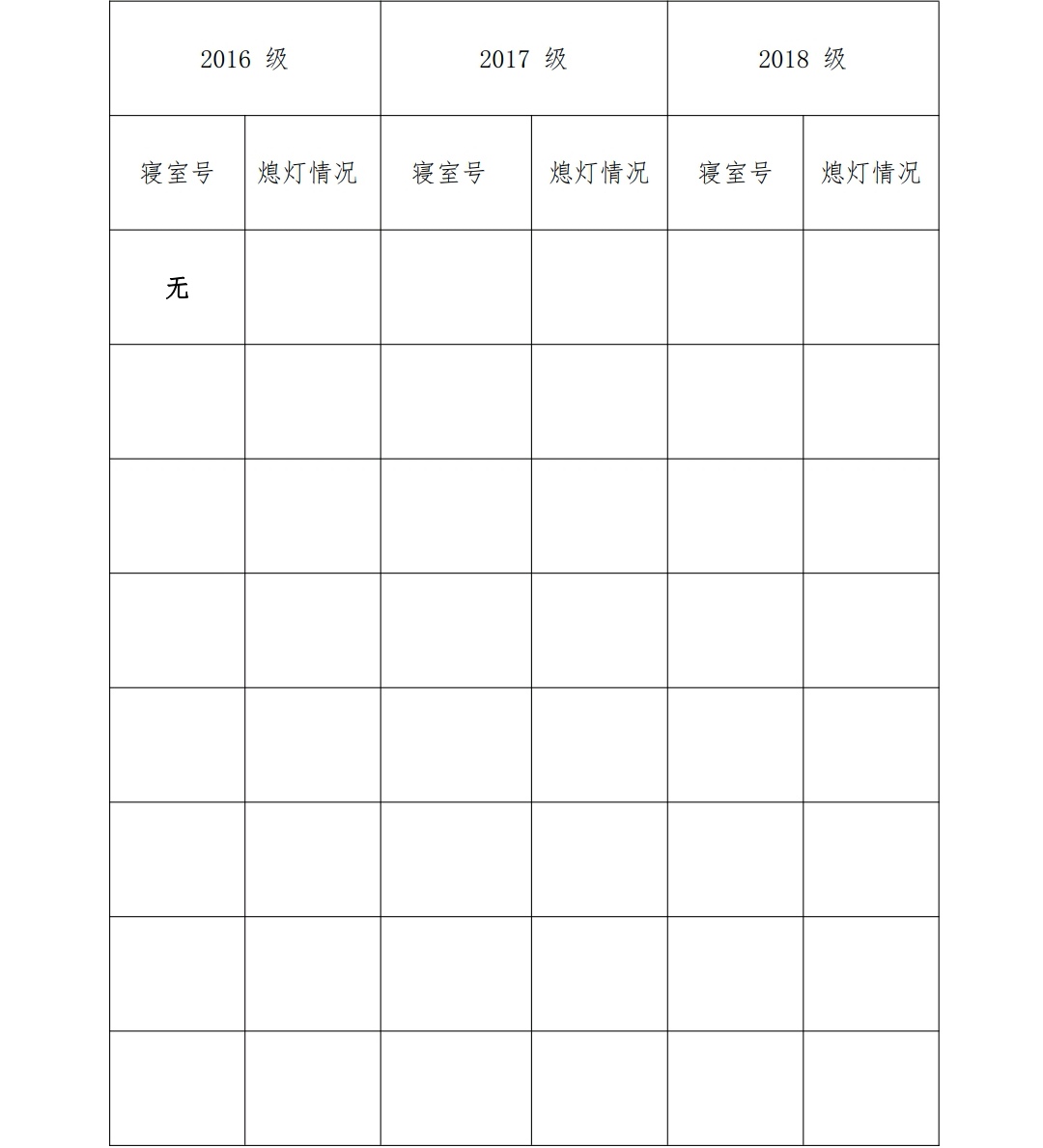 为改正各种不良现象和陋习,增强宿舍学习氛围,营造温馨家园氛围,化学化工学院学生会生活部对三个年级所有寝室进行熄灯检查。本次熄灯情况通报不合格寝室 0 间,具体情况如下: