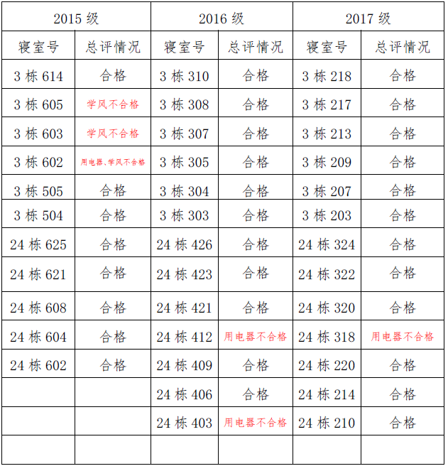 为改正各种不良现象和陋习,增强宿舍学习氛围,营造温馨家园氛围,必赢626net入口首页团委学生会生活部对各年级部分寝室进行检查。本次查寝共检查寝室数37间,6间寝室不合格。所查寝室总评情况如下: