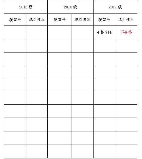 为改正各种不良现象和陋习,增强宿舍学习氛围,营造温馨家园氛围,必赢626net入口首页学生会生活部对三个年级所有寝室进行熄灯检查。 本次熄灯情况通报不合格寝室 1 间,具体情况如下: