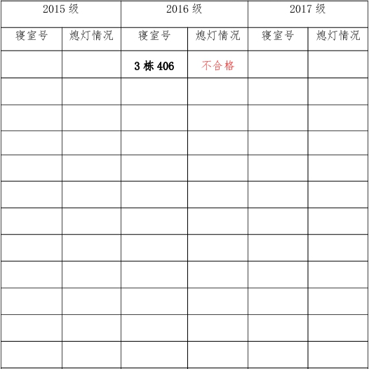 为改正各种不良现象和陋习,增强宿舍学习氛围,营造温馨家园氛围,必赢626net入口首页团委学生会生活权益服务部对三个年级所有寝室进行熄灯检查。本次熄灯情况通报不合格寝室1间,具体情况如下: