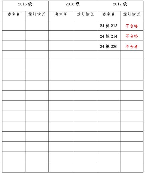 为改正各种不良现象和陋习,增强宿舍学习氛围,营造温馨家园氛围,必赢626net入口首页团委学生会生活权益服务部对三个年级所有寝室进行熄灯检查。本次熄灯情况通报不合格寝室 4 间,具体情况如下:
