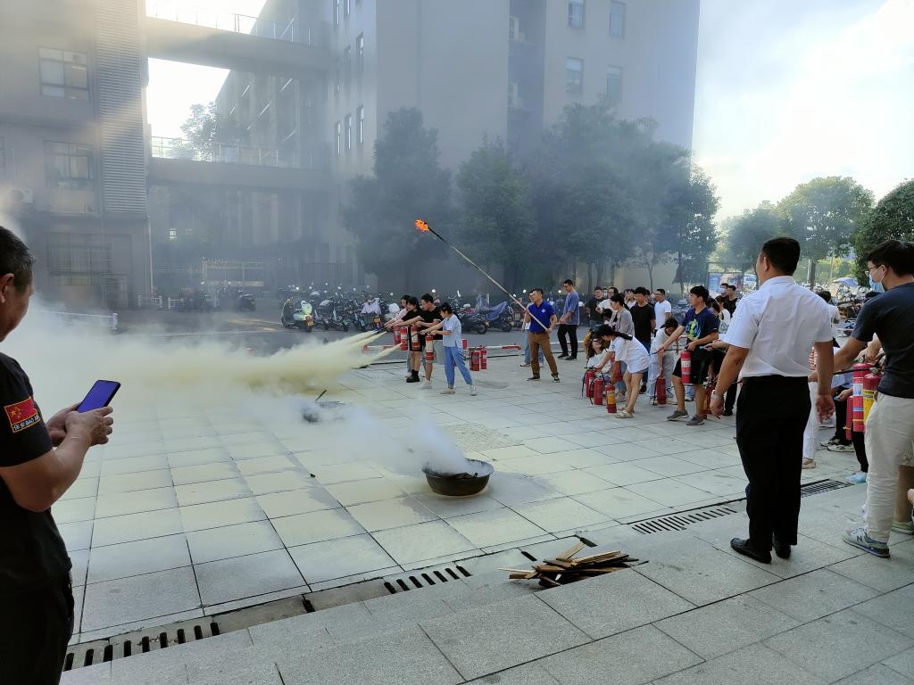 会后,在阳华副院长、李教官以及学院安全委员会成员的组织下,同学们有序分组进行了灭火器实际操作演练。
