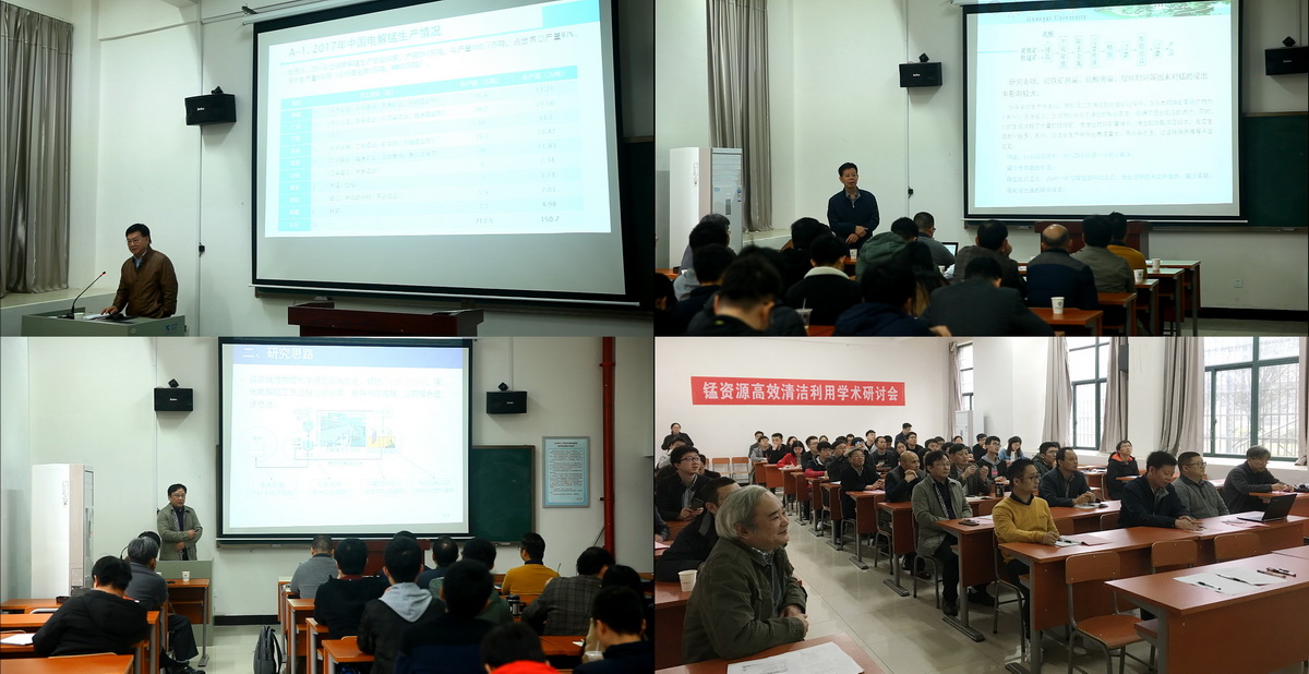 本次学术研讨会邀请了全国锰业技术委员会谭柱中教授级高工、重庆大学陶长元教授、广西大学粟海锋教授分别作了题为“我国电解金属锰发展概况”、“电解锰过程的耗散结构调控及应用”和“氧化锰矿湿法还原浸出研究进展”的报告,对我国锰行业相关技术的发展现状和前沿问题进行了深入讨论。