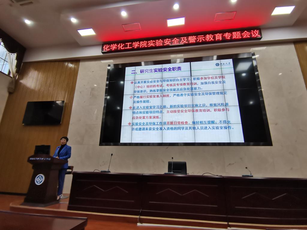刘又年院长在会上作了讲话。他强调,实验室安全事关广大师生的人身安全,也牵动校园及社会的稳定,在发展教学科研的同时,坚决把确保师生生命安全放在第一位,共同努力构建平安和谐校园。