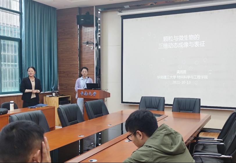 2021年10月13日,华南理工大学材料科学与工程学院龚湘君教授来本重点实验室访问,并于15:00至16:00在中南大学新校区化学楼129作了主题为“颗粒与微生物的三维动态成像与表征”的学术报告,实验室李娟教授主持了该场报告。在报告开始前,李娟教授为大家详细地介绍了龚湘君教授。