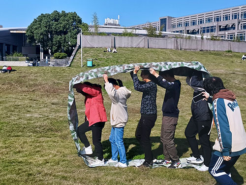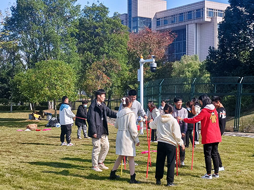 活动一开始,由范帆老师发言,告诉同学们本次活动是一次有别于日常的紧张上课的,一次轻松愉快的活动。接着,范帆老师组织大家报数分组,开始了活动的第一个游戏——名字滚雪球。第一个人报出自己的家乡和姓名,而后面的人需要自己前面所有人的信息都说出来并加上自己的信息,个人信息就像滚雪球一样越滚越大。这个游戏,让很多之前并不熟悉甚至并不认识的小伙伴增进了了解。然后,同学们又在范帆老师的组织下有序地进行了重新分组,又开始了接下来的三个非常有趣的游戏,分别是用同心鼓,无敌风火轮,以及不倒森林。这些有趣的活动,不仅放松了同学们的身心,还增强了同学们相互合作相互配合的默契。同学们都感到非常的开心。